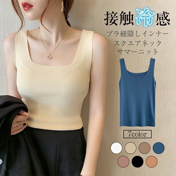 接触冷感 ブラ紐隠しインナー タンクトップ タンク キャミソール インナー レディース 夏 スクエアネツク サマーニットタンクトップ 脇汗 抗菌防臭 汗取りインナー