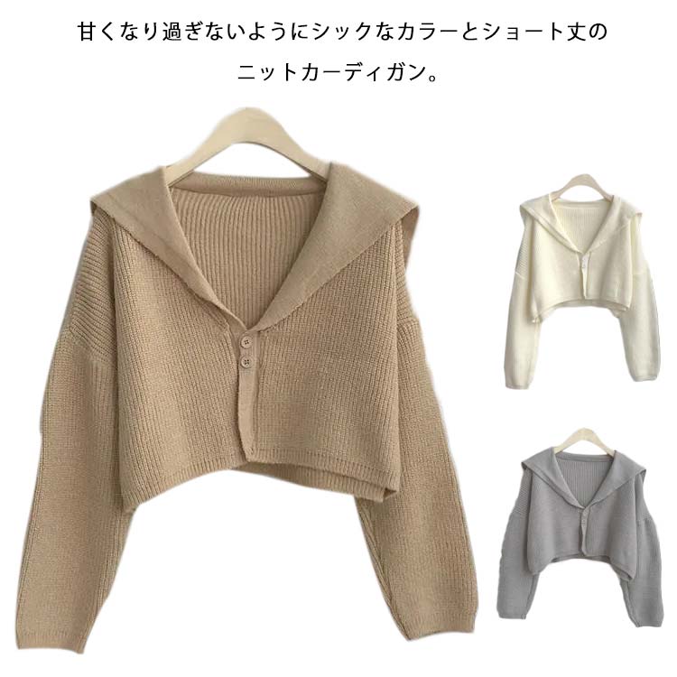 ショート丈 ざっくり ニット カーディガン レディース ニット 羽織り 長袖 ゆったり ボリュームスリーブ リブニット ニットカーディガン ボレロ vネック 制服 セーラー服 襟付き きれいめ 大人