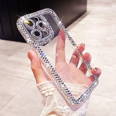 人気新作 ラインストーン iPhoneケース ビジュー 縁どり レンズ保護 キラキラ おしゃれ ケース カメラ保護 クリア 透明 韓国 アップルマークが見える