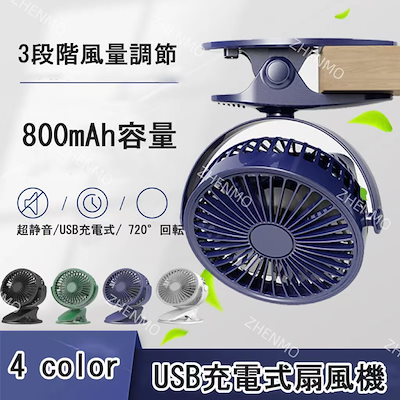 扇風機 クリップ式扇風機 USB扇風機 卓上扇風機 卓上 クリップ 720度回転 小型 超静音 大風量 強力 風量3段階調節 節電 ベビーカー ミニ扇風機 usb充電式 熱中症対策